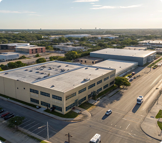 A professional site for a San Antonio industrial real estate brokerage, displaying property listings and available services.
